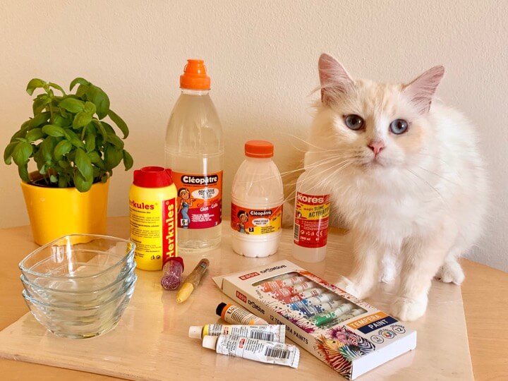 Připravíme si skleněnou nebo plastovou misku a nejlépe dřevěná míchatka nebo platové lžičky. Do misky nalijeme PVA lepidlo. Nezáleží na tom, zda syté bílé nebo průhledné. Vyrobit sliz můžeme z obou variant.