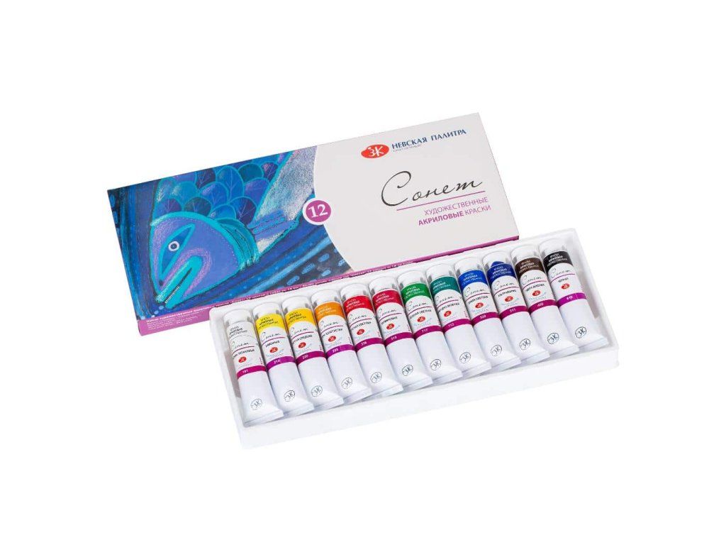 - Sada 12 akrylových barev v tubách 18 ml