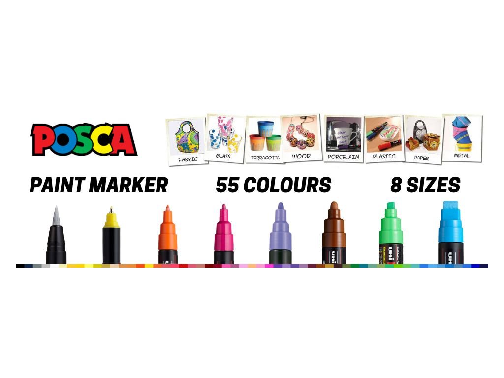 Uni Posca je popisovač s vysoce krycím pigmentovým inkoustem na vodní bázi. Je vhodný na popisování nejrůznějších materiálů (keramika, sklo, kov, kámen, papír, plast, textil, dřevo). Je ideálním fixem pro malování na kamínky. Po zaschnutí je vodě odolný. Popisovač je k dispozici v mnoha živých, neprůhledných, dobře krycích barvách. Vynikající pro ilustraci, plakáty, psaní nápisů nebo jiné umělecké nebo hobby použití nebo značení. Posca se absorbuje po vláken papíru, kartonu či textilu. Oblíbené je také použití popisovače na malování na kameny. Stopa může být trvalá na terakotě (po fixaci teplem na 220°C 45 min), porcelán a sklo (po fixaci teplem na 160°C 45 min a následným přelakováním čirým lakem), textil (po zažehlení z rubové strany), kov, plast, dřevo (po přelakování čirým lakem), malované kameny přelakujte lesklým lakem ve spreji. Více informací najdete v našem článku o malování na kamínky v sekci Magazín.