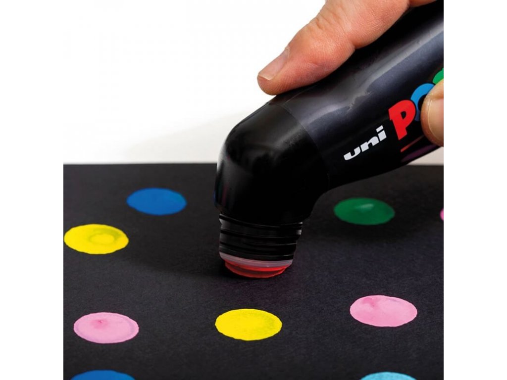 Jedinečný. XXL kulatý a pěnový hrot je mimořádně přesný. Zábavný. Můžete ho držet jako běžný popisovač nebo vzhůru dnem. Ideální pro kontrolovaný „drip“ efekt. Městský Bubble lettering, kontrolované stékání, stříkance, sprejové efekty. Jasný odkaz na historii značky POSCA – street art. Velké plochy, nekonečné linie, instinktivní použití, nekonečná zábava.