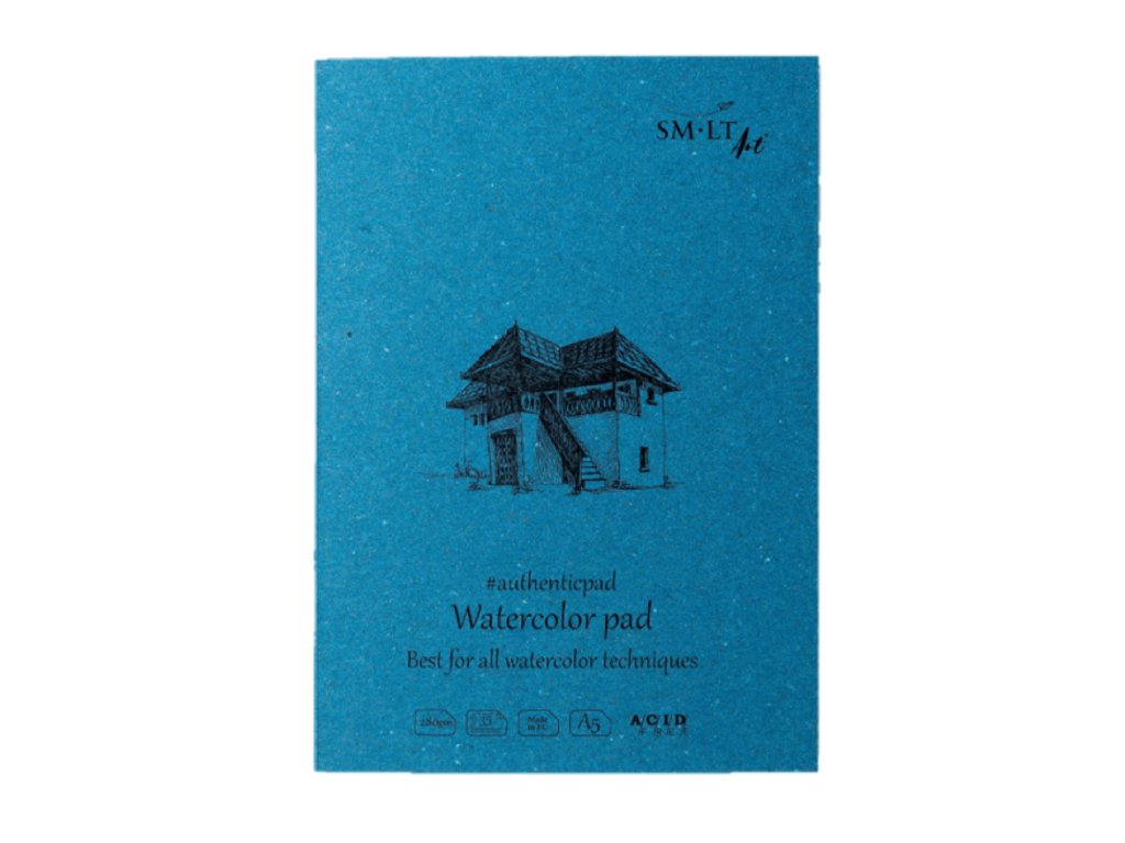 Na tento vysoce kvalitní akvarelový papír lze aplikovat akvarelové barvy, ať už klasícké, pastelové či metalické, temperové a kvašové barvy, a také akvarelové fixy a markery. Blok je krytý recyklovaným barveným kartonem s pevnými kartonovými zády. Rovné utržení papíru usnadní perforace listů. Akvarelový blok Smlt obsahuje papír bez acidů a s FSC certifikátem.