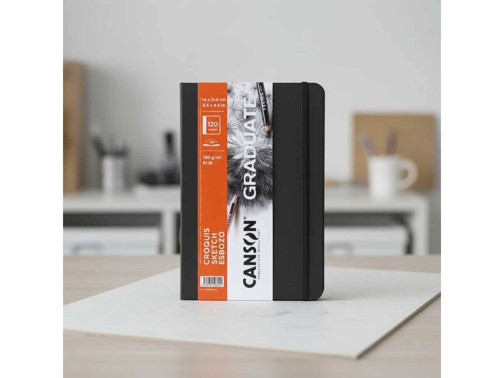 Canson Graduate Book Croquis je stylový a odolný skicák určený pro začátečníky i pokročilé umělce. Nabízí přírodní bílý papír o gramáži 120 g/m², který je lehce zrnitý, snadno se maže a dokonale se hodí pro rychlé náčrty, kresbu tužkou, uhlem nebo pastelem.
