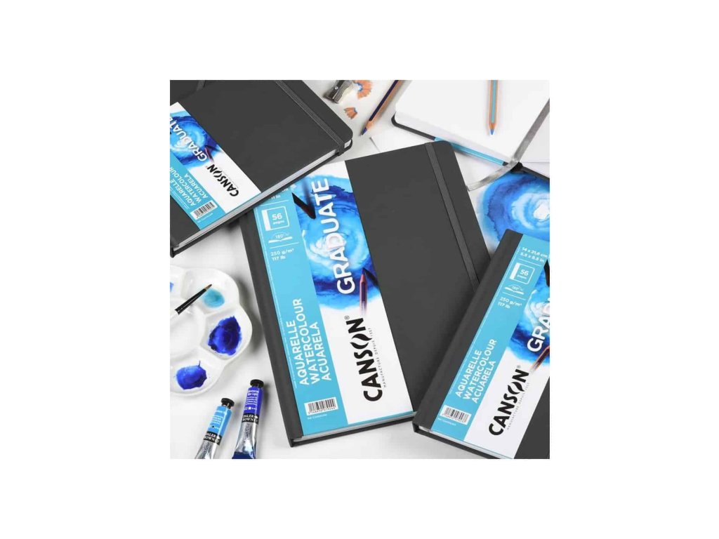 Canson Graduate Book Watercolor – akvarelový skicák 250 g, 56 stran, pevná vazba, gumička