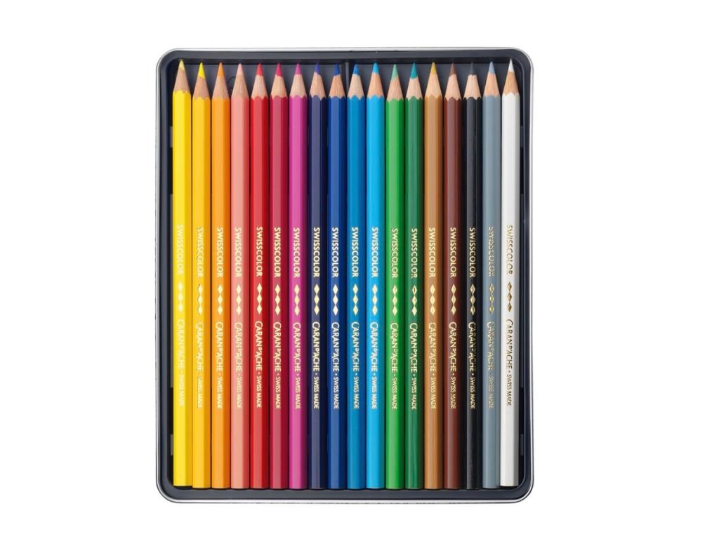 Caran D'ache Swisscolor permanentní pastelky 18 barev, plechová krabička