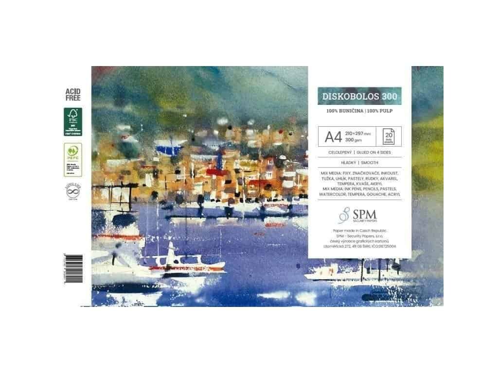 DISKOBOLOS grafický blok A4 300 g/m2 – hladký povrch, bloková vazba