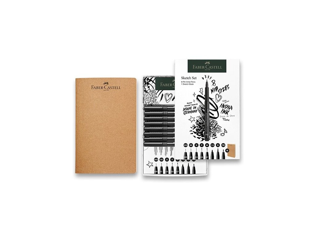 Faber-Castell Pitt Artist Pen popisovače + skicář – sada 8+1 ks, černý