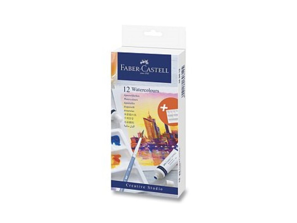 Faber-Castell Watercolours - 12 akvarelových barev v 9 ml tubách, míchací paleta, štětec č. 6