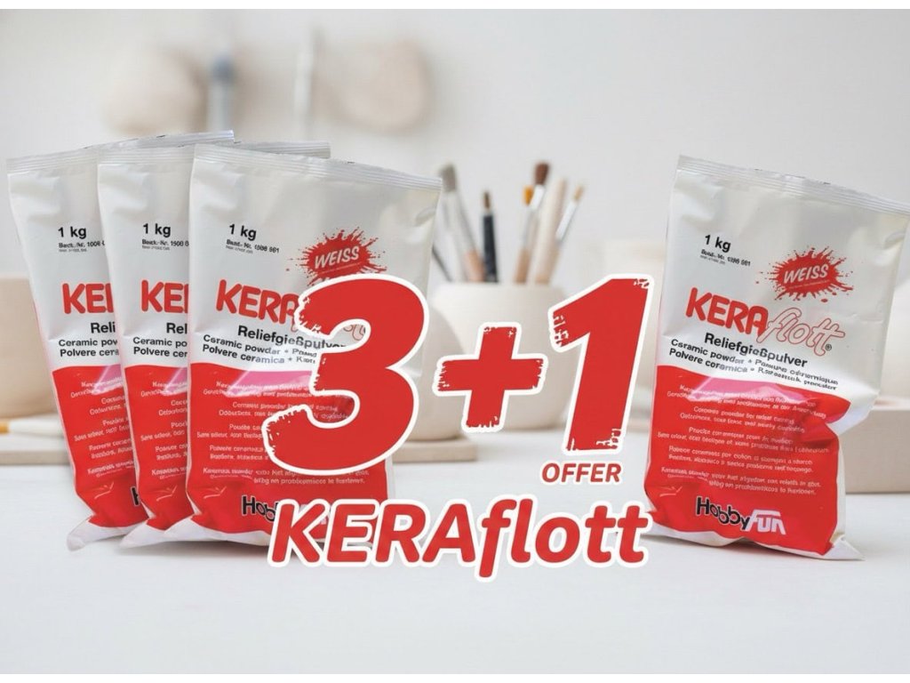 KERAflott je velmi pevný a vysoce kvalitní bílý keramický prášek určený pro odlévání do forem. Skvěle se hodí pro výrobu dekorací, figurek, reliéfů a dalších výtvarných projektů.
