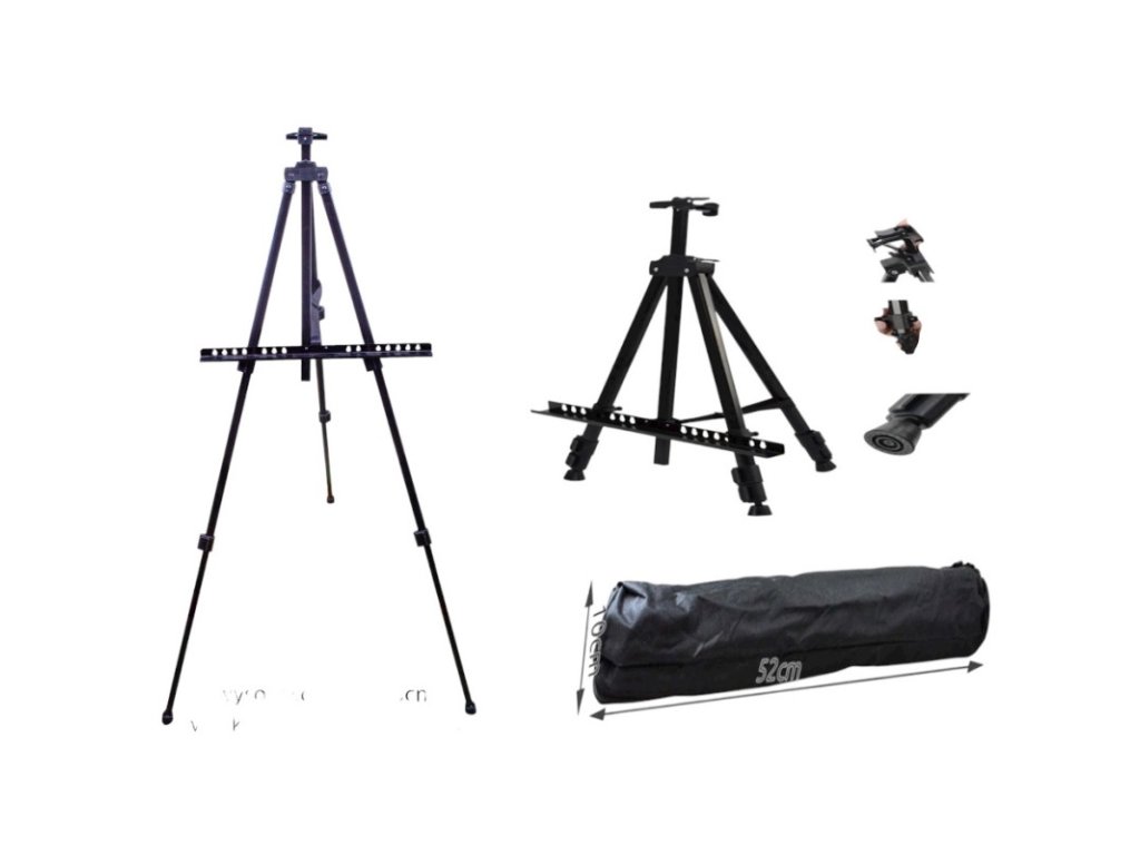 Univerzální kovový malířský stojan kombinuje nízkou hmotnost s odolnou konstrukcí a širokým rozsahem výškového nastavení 93–165 cm. Využijete jej jako stolní, studiový i venkovní stojan – pro malbu, kresbu i vystavení hotových prací.