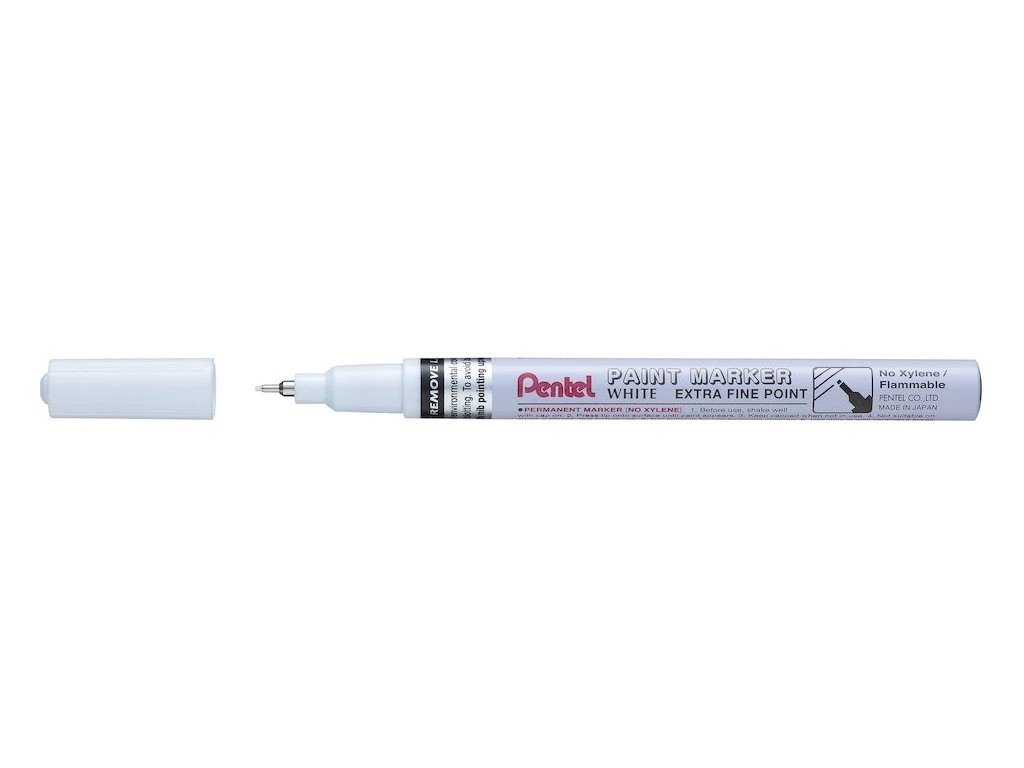 Lakový popisovač Pentel Paint Marker v bílé barvě je určen pro detailní a trvanlivé popisy na široké škále materiálů. Kovový jehlový hrot o šířce 0,7 mm vytváří tenké, čisté linie s vysokou kryvostí, které výborně vyniknou i na tmavých podkladech. Inkoust je permanentní, rychleschnoucí a složením bez xylenu, takže se pohodlně používá v interiéru i exteriéru.