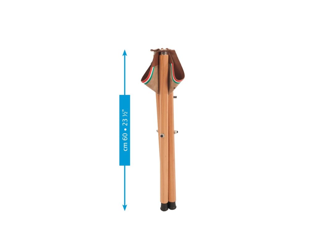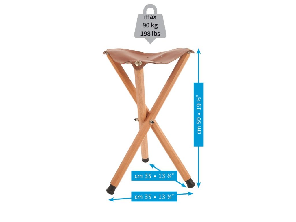 Je vyrobena z pevného, naolejovaného bukového dřeva a doplněna koženým sedátkem, které zaručuje pohodlí i při delším sezení. Díky své nízké hmotnosti a skládací konstrukci je ideální pro plenér (malování v přírodě), ateliér nebo výstavy.
