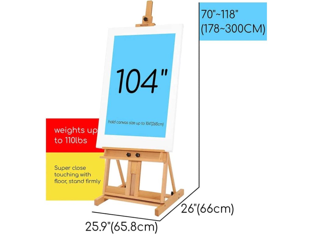 Mabef M/25 – ateliérový malířský stojan 2v1, přestavitelný na stůl pro práce ve vodorovné pozici plátna
