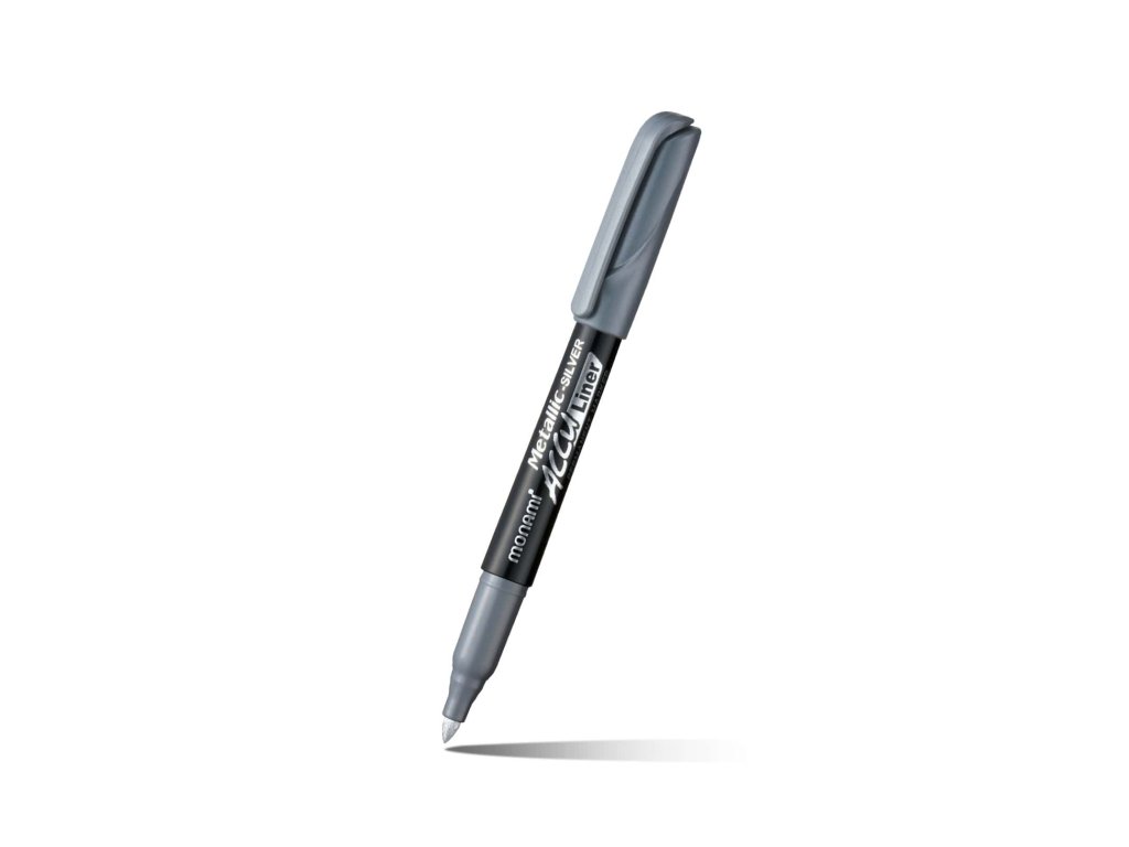 MONAMI Accu Liner Metallic je stříbrný permanentní popisovač s metalickým efektem určený pro výrazné psaní, značení a dekorování. Kulatý hrot se stopou 1,7 mm je vhodný pro čitelné popisky a nápisy, které mají být dobře vidět i na tmavých papírech. Inkoust na bázi alkoholu je permanentní, nesmyvatelný a voděodolný, takže se hodí i pro použití na řadě běžných materiálů.