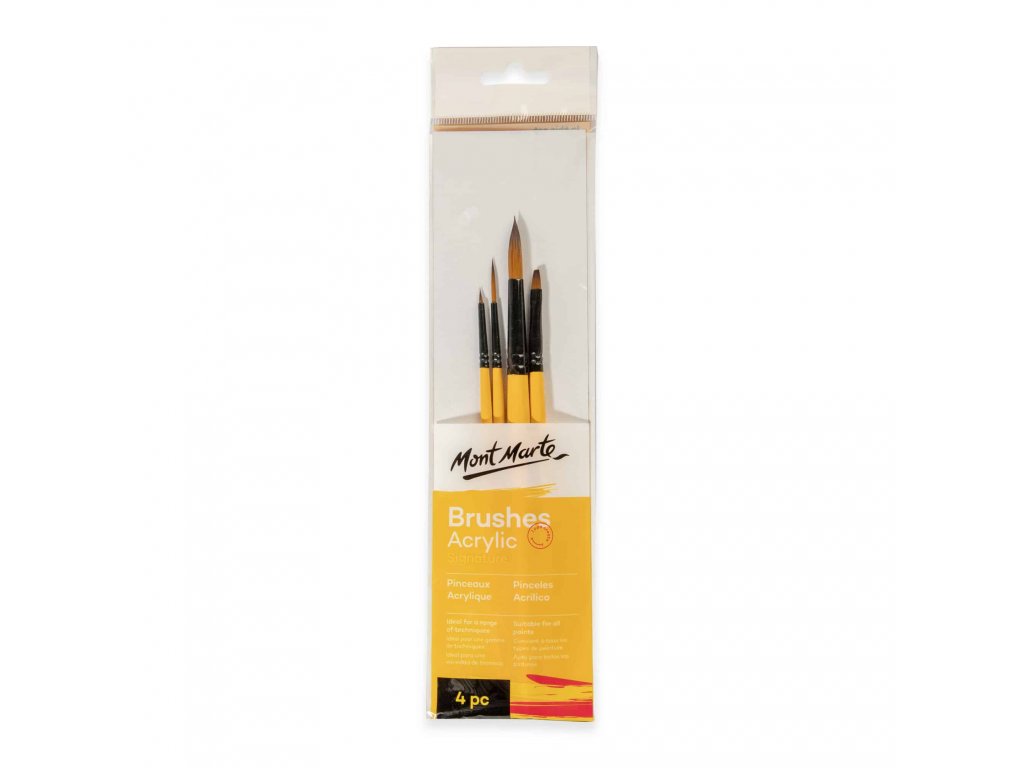 Mont Marte sada štětců na akryl č.009 – 4 ks | Taklonové štětce s dřevěnou rukojetí