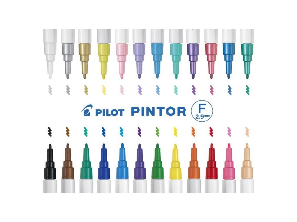 Dekorativní akrylové fixy Pilot Pintor jsou v úchvatných klasických i pastelových odstínech. Akrylové popisovače jsou ideální pro malování na kamínky, pro kreslení na různé povrchy, zdobení, označování, psaní a kaligrafii. Popisovač Pintor má vysokou krycí sílu, obsahuje pigmentový inkoust, který je na vodní bázi.