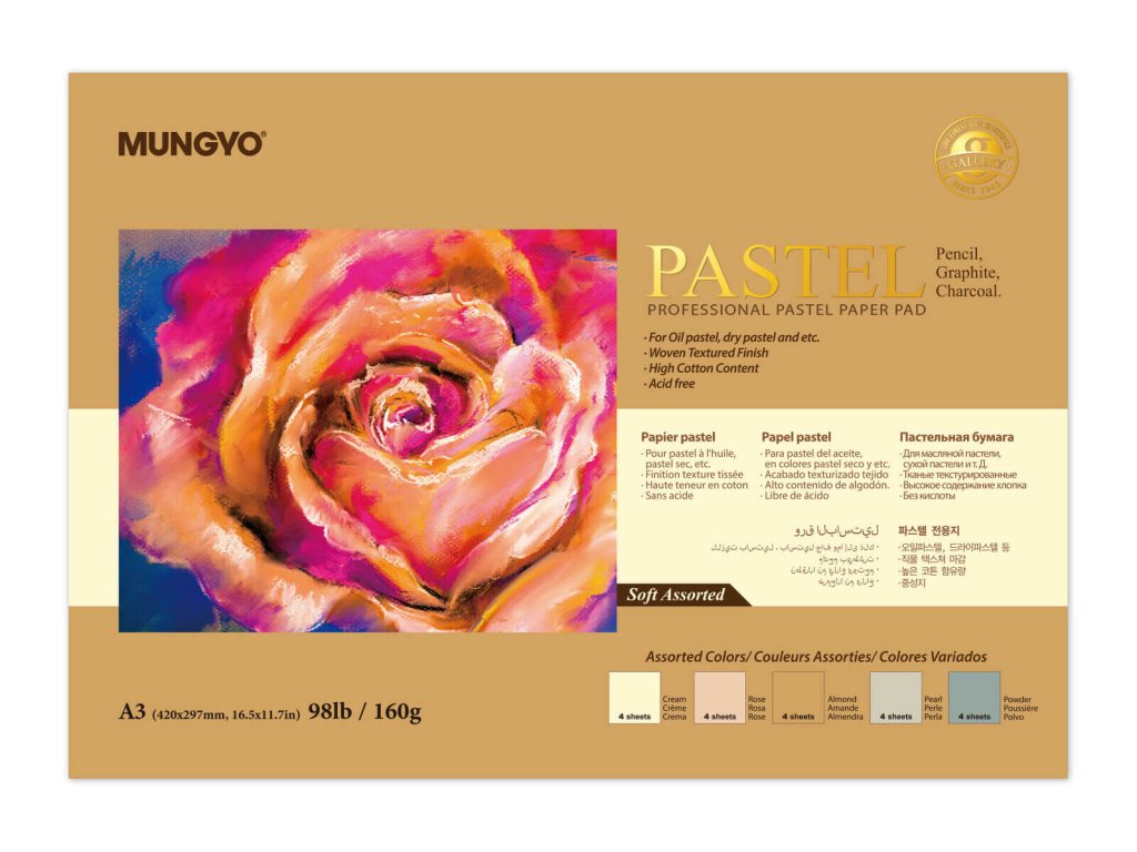 Profesionální pastelový blok Mungyo je navržen speciálně pro práci se suchým i olejovým pastelem. Obsahuje kvalitní papíry s vysokým podílem bavlny, které zajišťují vynikající přilnavost pigmentu a zároveň brání jeho nežádoucímu rozmazávání.