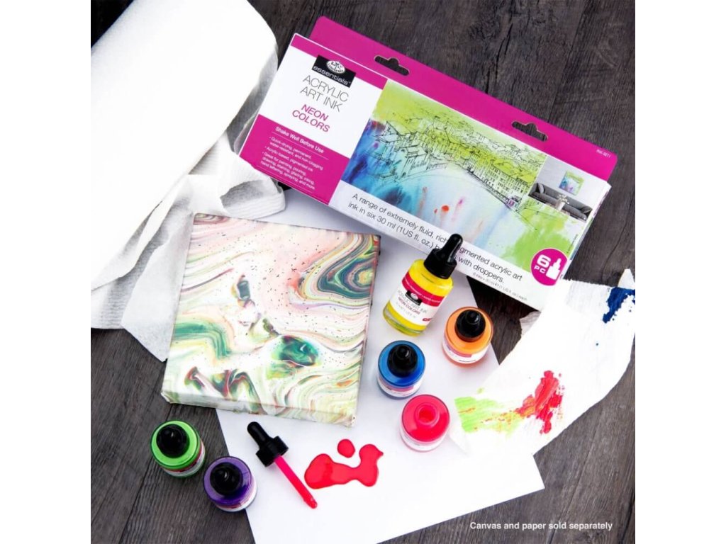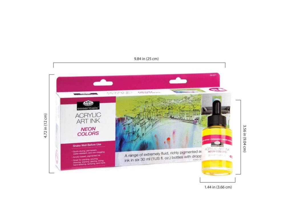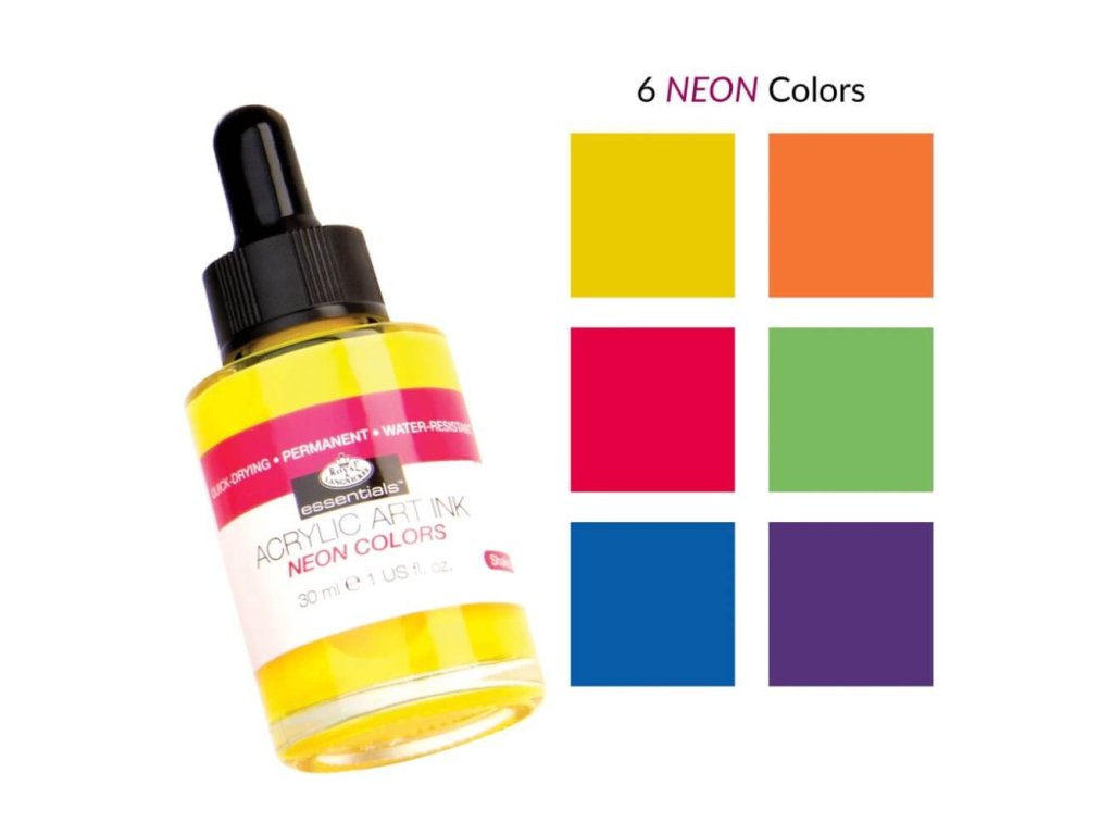 Zviditelněte svůj umělecký styl s Royal & Langnickel Neon Acrylic Ink! Tato sada 6 výrazných neonových odstínů po 30 ml je navržena pro odvážné tvůrce, kteří se nebojí experimentovat. Neonové inkousty vynikají intenzivní svítivostí a působivým výsledkem na světlém i tmavém podkladu.