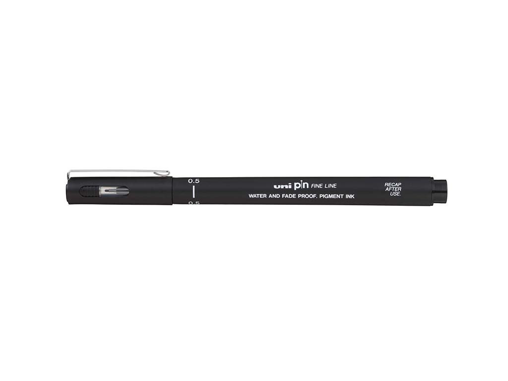 UNI PIN 05 kreativní liner se šířkou stopy 0,5 mm je určen pro přesné linkování, technické kreslení, skicování i detailní ilustraci. Kalibrovaný a odolný hrot pomáhá udržet konzistentní stopu při pomalé i rychlé práci. Použitý Super Ink inkoust je voděodolný a světlostálý, takže je vhodný pro vrstvení a následné přemalování akvarelem bez nežádoucího rozpíjení čar.
