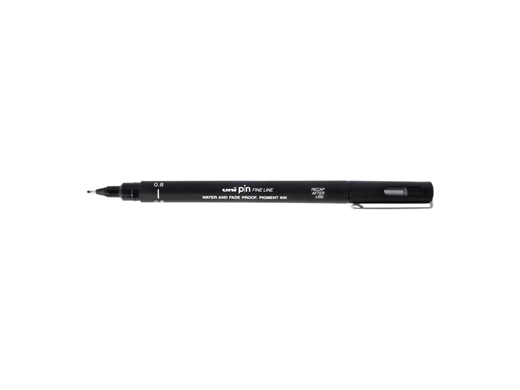 UNI PIN 08 kreativní liner se šířkou stopy 0,8 mm je určen pro přesné linkování, technické kreslení, skicování i detailní ilustraci. Kalibrovaný a odolný hrot pomáhá udržet konzistentní stopu při pomalé i rychlé práci. Použitý Super Ink inkoust je voděodolný a světlostálý, takže je vhodný pro vrstvení a následné přemalování akvarelem bez nežádoucího rozpíjení čar.
