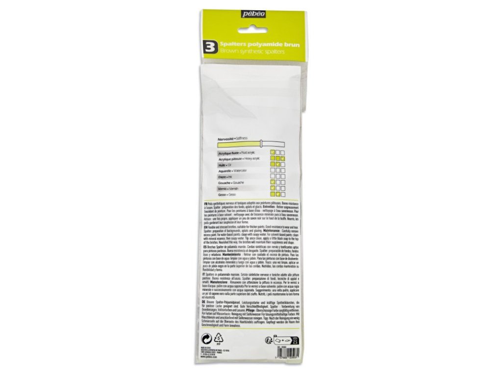 Pébéo Sada 3 ks plochých štětců (spalter), 25/40/50 mm, tmavý polyamid