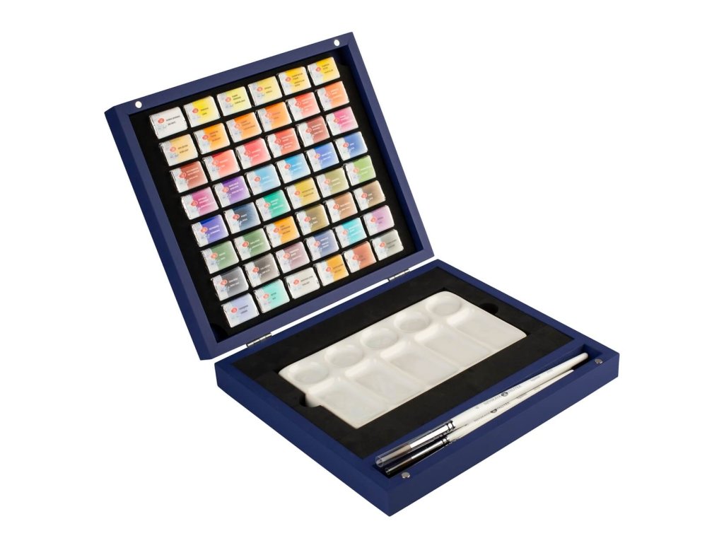 Sada Akvarelových barev White Nights 48 ks v modré dřevěné kazetě + Blok SM.LT Watercolor Pad A5 280g, 35 listů