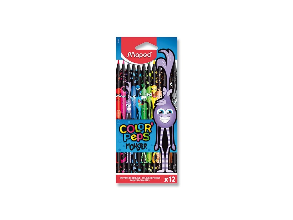 Sada bezdřevých pastelek Maped Color’Peps Monster – 12 barev, trojhranné