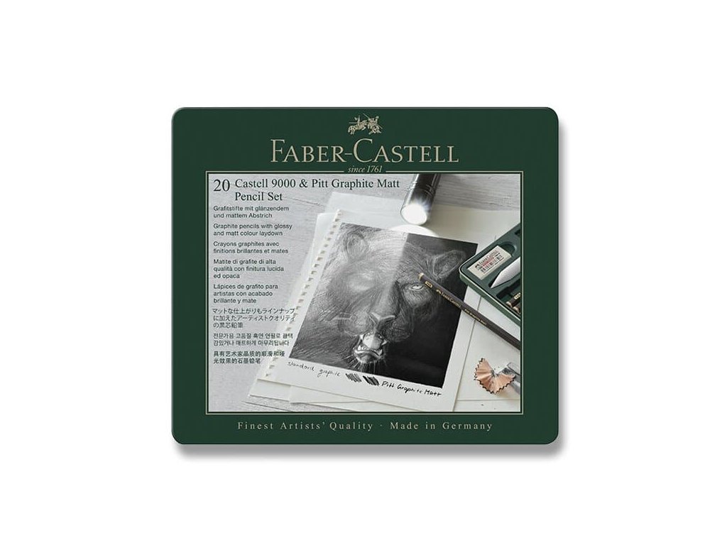Sada Faber-Castell Pitt Graphite Matt & Castell 9000 kombinuje inovativní matné grafitové tužky s minimálním odrazem světla a legendární grafitové tužky Castell 9000 s jemným odstupňováním tvrdostí. Nabízí široké tonální rozpětí, hladkou aplikaci i maximální kontrolu nad detailem a hloubkou obrazu.