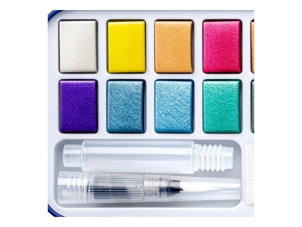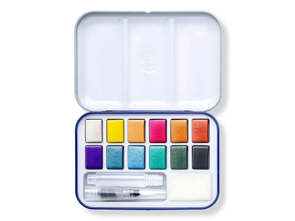 Sada metalických akvarelových barev s vodním štětcem STAEDTLER Design Journey – 12 ks