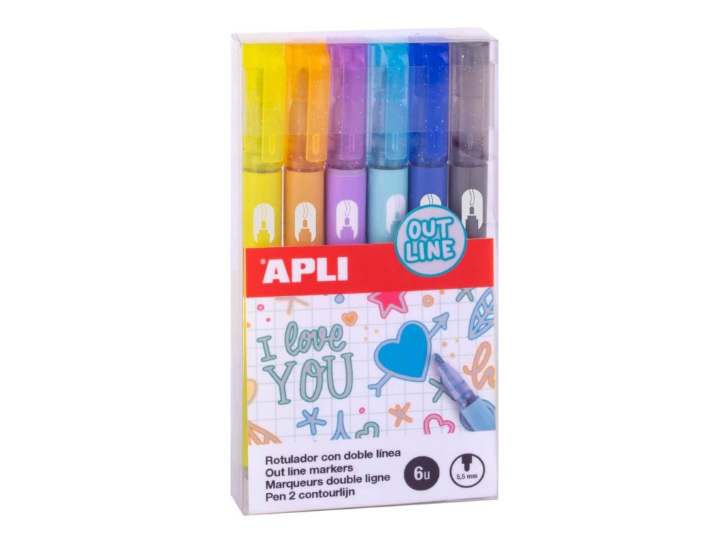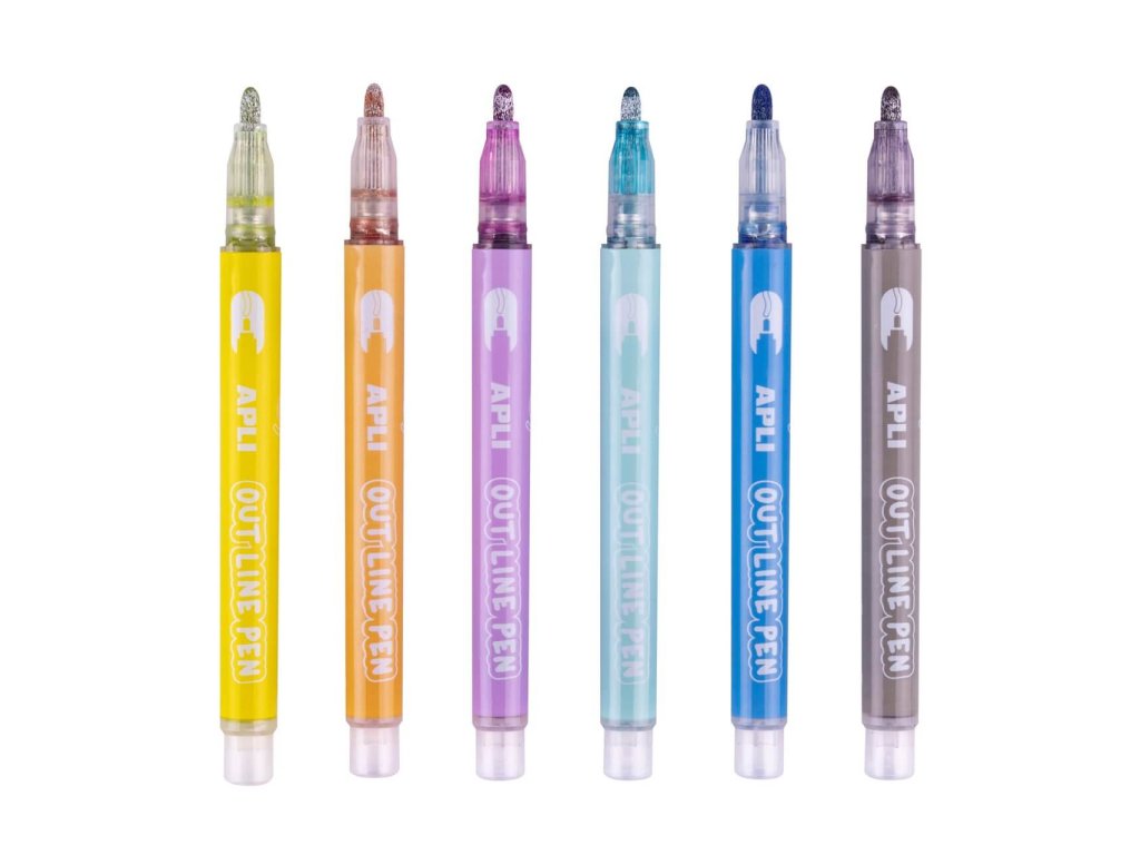 Sada metalických popisovačů APLI Outline – dvoubarevná stopa, 6 ks