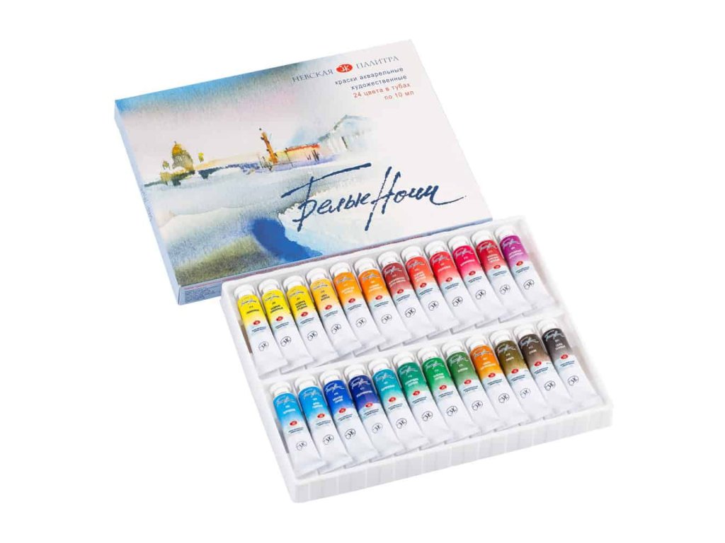 Sada profesionálních akvarelových barev v tubách White Nights - 24 ks