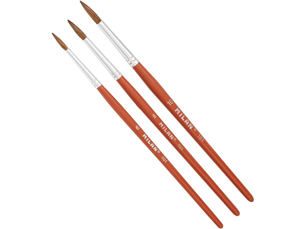 Kulatý školní štětec na vodové a temperové barvy. Vlasy štětců jsou v kombinaci 70% přírodní vlasy a 30% syntetických vláken. Tyto školní štětce jsou měkké, odolné a pružné, dobře zadržují vodovou barvu a temperu. Tělo je dřevěné, lakované s kovový úchopem vlasů. V naší nabídce najdete široký výběr velikostí.