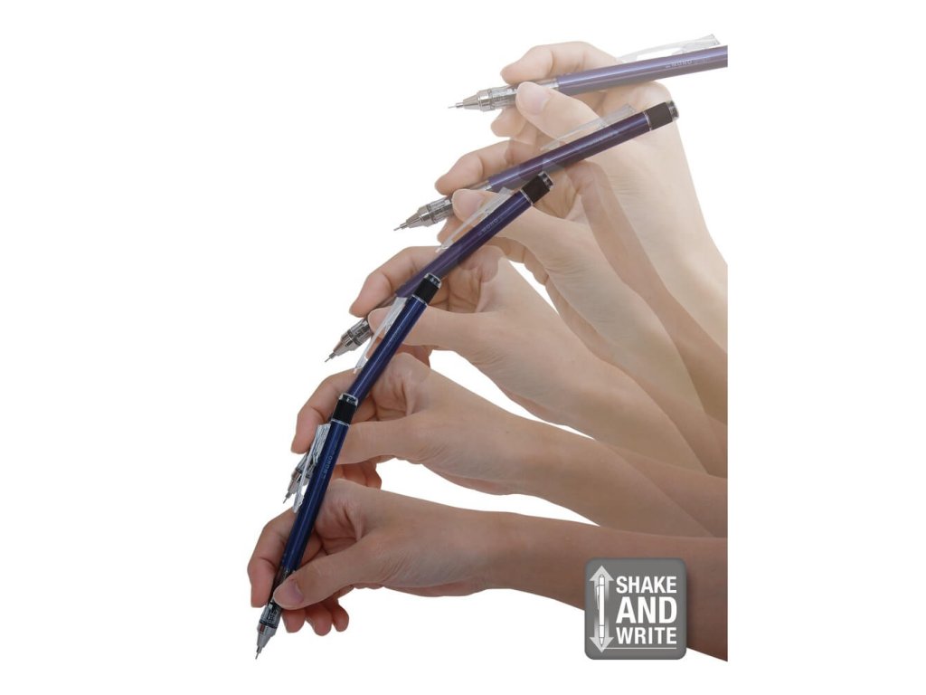 Mikrotužka s třepacím mechanismem (shake-mechanism) Tombow je nyní v nové edici - pastelové barvy! Tuha se posunuje pomocí třepání nahoru a dolů Pentelka skrývá na vrchním konci gumu, kterou lze jednoduše vysunout pootočením plastového krytu. K uzamčení třepacího mechanismu posuňte palcem klip směrem vzhůru. Tím zabráníte nežádoucímu vysunování tuhy, třeba při přepravě. Japonský výrobce Tombow garantuje vysokou precisnost při psaní a gumování. Mikrotužka má sílu tuhy 0,5 mm.
