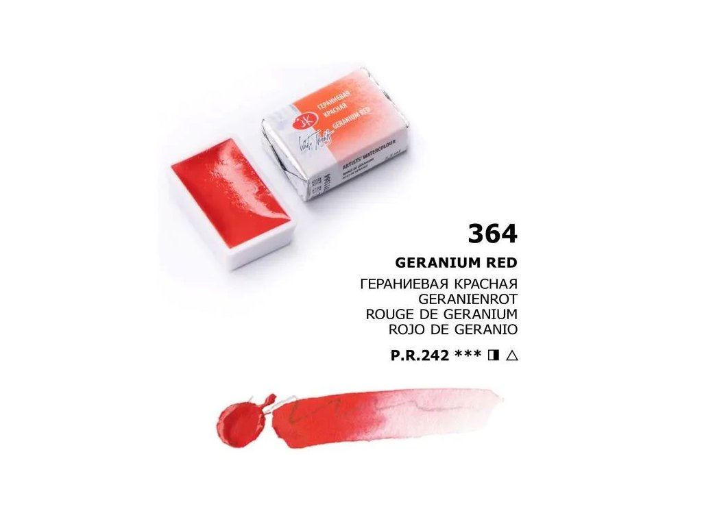 White Nights Geranium Red 364 je granulující akvarelová barva v pánvičce o objemu 2,5 ml. Granulující složení je navržené tak, aby se pigment na papíru usazoval nerovnoměrně a vytvářel zrnité, organické struktury, které se hodí pro krajiny, kámen, dřevo i abstraktní plochy.